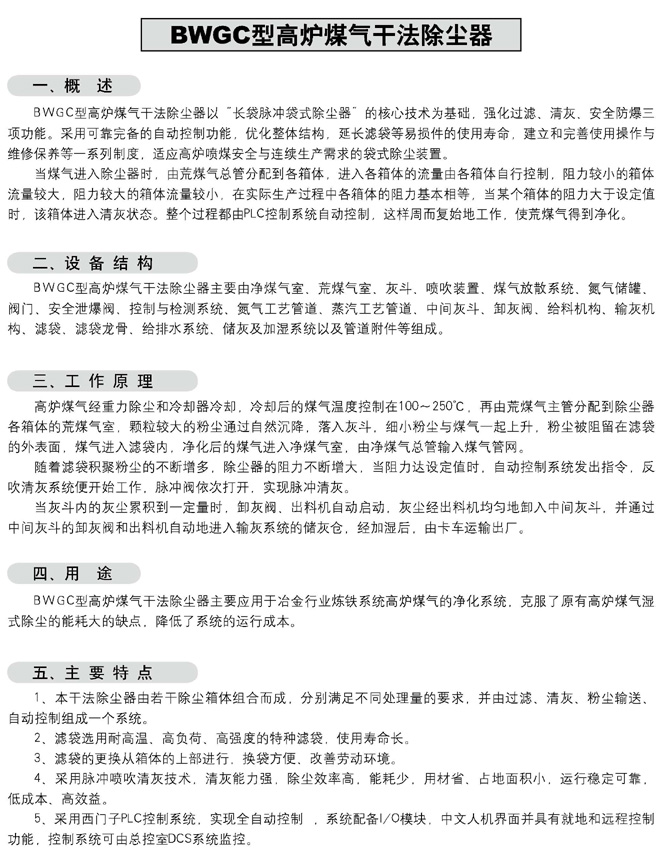 BWGC型高爐煤氣干法除塵器