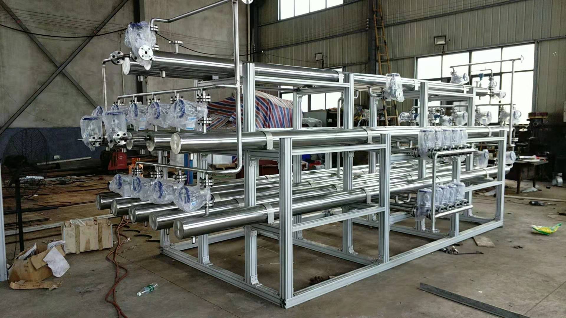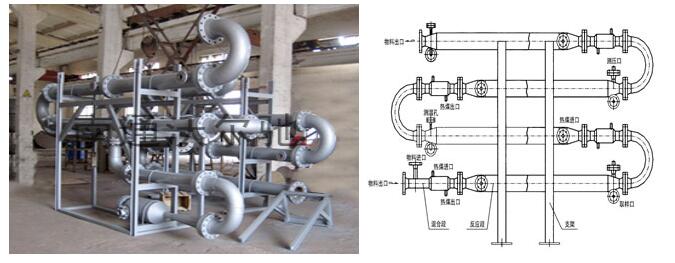 反應(yīng)器是化學(xué)反應(yīng)工藝中的核心設(shè)備,它按結(jié)構(gòu)大致可分管式、釜式、塔式、固定床等,廣泛適用于氣、液、固相的化學(xué)混合反應(yīng)。我公司研制開(kāi)發(fā)的JHF系列強(qiáng)化傳熱反應(yīng)器內(nèi)部結(jié)構(gòu)與靜態(tài)混合器相仿,能使進(jìn)入強(qiáng)化傳熱混合反應(yīng)器的不同液體互相很好地混合,但與常規(guī)的靜態(tài)混合器內(nèi)部單元不同,其內(nèi)部構(gòu)件不是用板材而是用較細(xì)的管材制作,細(xì)管內(nèi)部可以通加熱介質(zhì)也可以通冷卻介質(zhì),所以內(nèi)部單元不僅能起到了充分混合,而且能提供很大的傳熱比表面積。